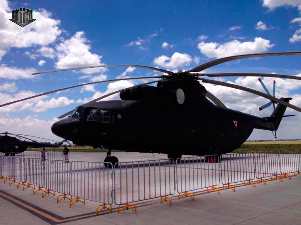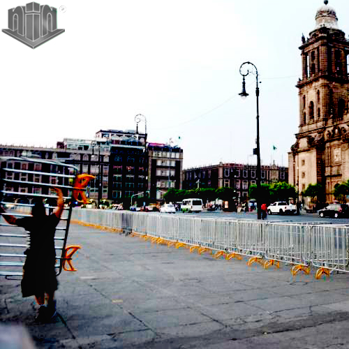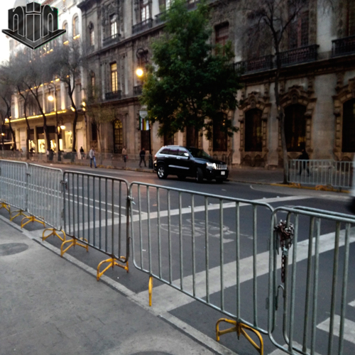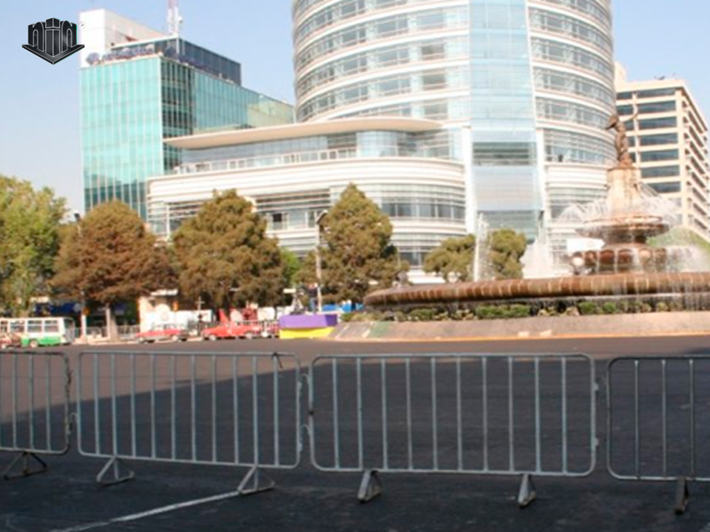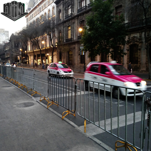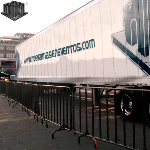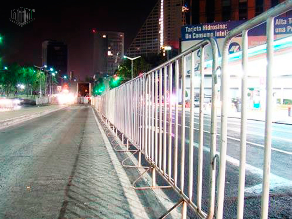 Con este tipo de valla podemos delimitar espacios y áreas de diversas magnitudes, organizar unifilas y proteger zonas de trabajo. Es ideal para organizar desfiles.